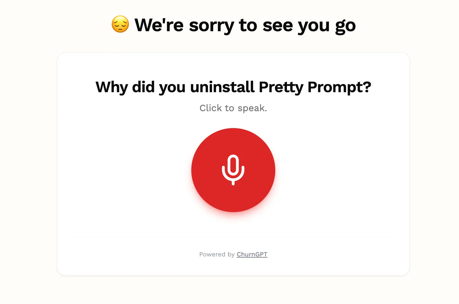 When someone uninstalls Pretty Prompt, they can simply talk and leave a message with feedback. Just like a voicemail âď¸.