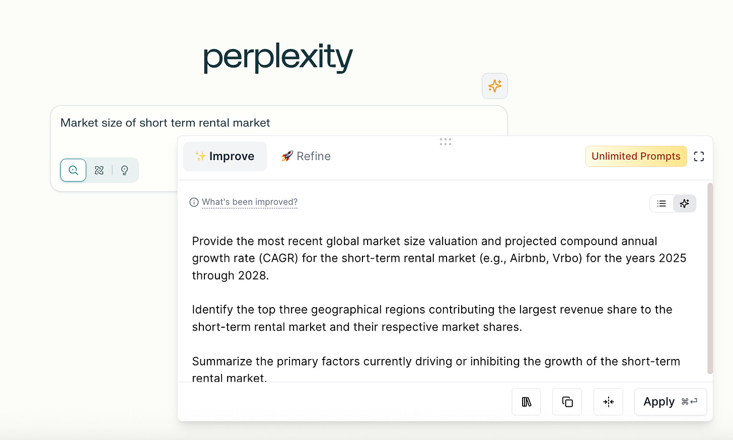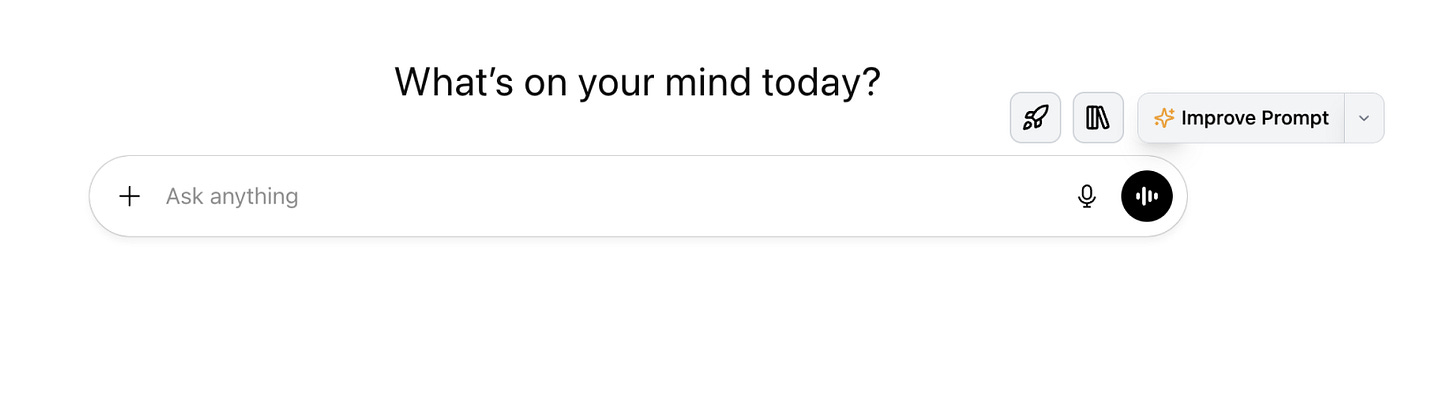 So, as you prompt, you just click the Improve Prompt button (aka THE BUTTON), and you get a perfect prompt, in-context, right there.